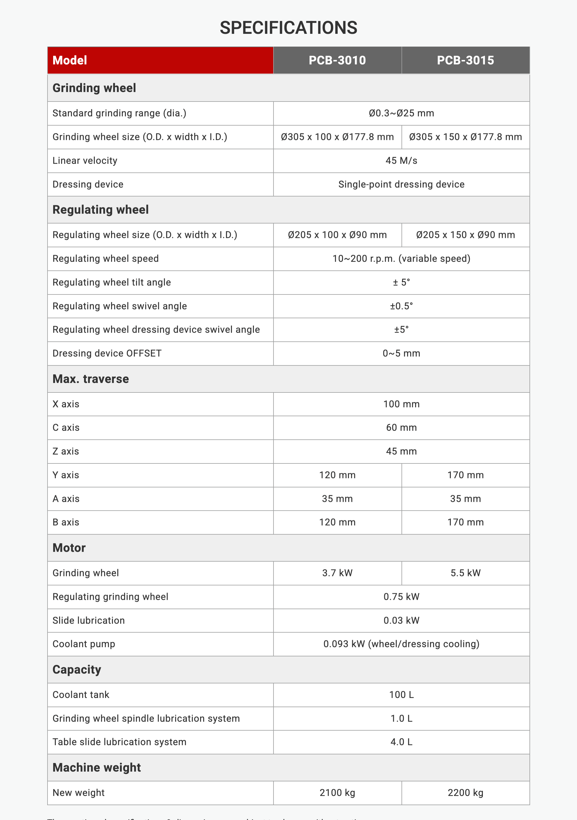 machine specs