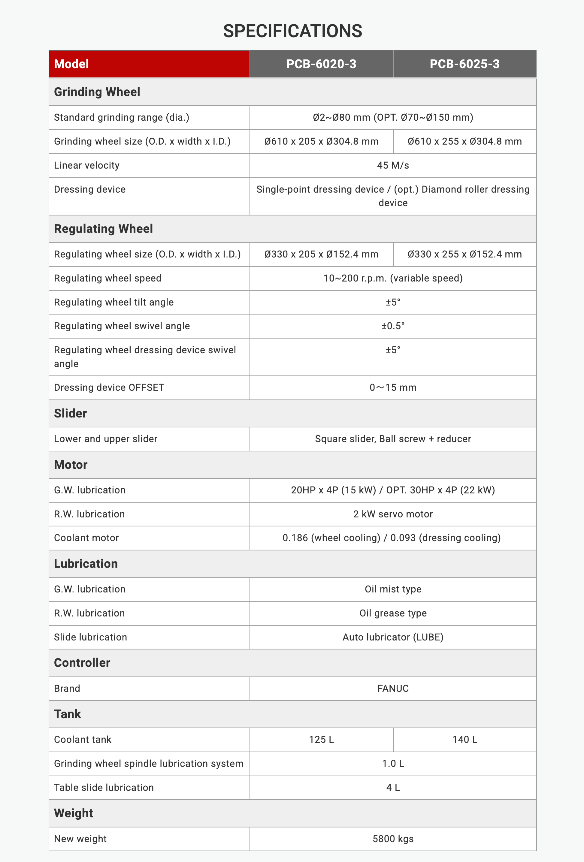 machine specs